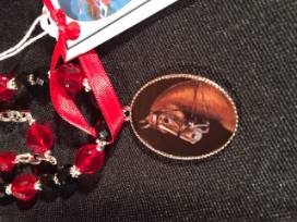 Made by Jan Davenport this special Saddlebred Pendent black and red beaded necklace is about 18 inches. The necjlace is double stranded.