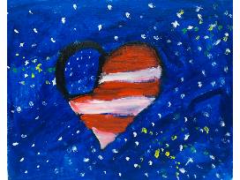 "My painting this year is called 'Heart in The Sky.' The heart is patriotic representing the love of our flag and the heart is in the night sky because it is a pretty background and that is where the fallen are as well as in our heart."