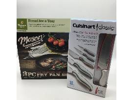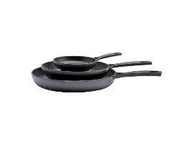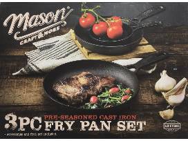 Mason Craft & More: 3-Piece Pre-Seasoned Cast Iron Fry Pan Set includes: 5-inch, 8-inch and 10-inch fry pans.