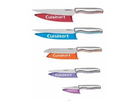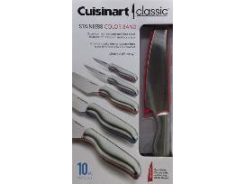 Cuisinart Classic Stainless Color Band 10-piece knife set includes: 8" chef knife, 8" slicing knife, 7" Santoku knife, 5" Utility knife, 3.5" Paring knife - each with a matching blade guard.