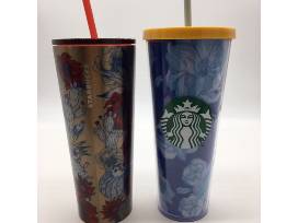 Starbucks Cup: 24 oz Limited Edition Blue Floral Acrylic Cold Cup with Straw
