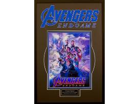 This 16"x20" Movie Poster comes in its own custom designed black frame with Official "Avengers Endgame" logo double laser cut in blue matting on black background with a custom engraved nameplate and certificate of authenticity.