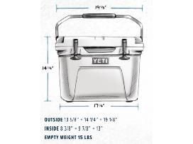 - Holds either 20 pounds of ice (only) OR 16 beer or soda cans (Using a 2:1 ice-to-can ratio by volume)