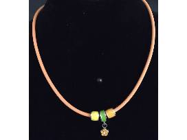 - Children's Orange Rubber Necklace with Sterling beads & Flower Charm
