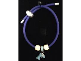 - Children's Blue Rubber Bracelet with Sterling beads and Dolphin Charm