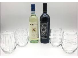 4 Diamond Engraved Crystal Stemless Wine Glasses
