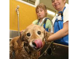 Including shampoo, conditioner, leave-in coat shiner & skin moisturizer, cologne, apron, brushes & combs, towels & dryer. You just bring the dog! No appointment is necessary.