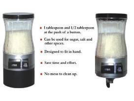 The automatic dispenser comes with 2 - Have it exactly the way you like it, every time you want it! 1 tablespoon and 1/2 tablespoon at the push of a button. Can be used for sugar, salt and other spices. Designed to fit in hand saving time and effort!