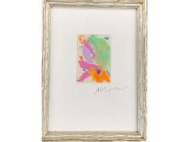These beautiful 9 1/2" x 7" framed oil abstracts, "Petit Jumeaux", by Molly P. Squire are a must for any house.