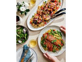 Every Tuesday morning, Kate will send a new menu for the following week. The menu will consist of four dinner options -- greens and grains, vegetarian, seafood and animal protein. You will choose four total meals from the four available menu options. Each dinner serves two adults for a total of eight servings of food per week. Orders must be placed by 2pm on Thursday and are delivered between 2pm-5pm the following Tuesday.