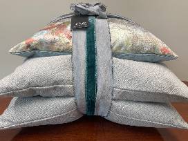 These three stunning pillows from u-fab interiors will brighten any room in your house. The two larger pillows measure 18"x18" while the smaller pillow measures 16"x12".