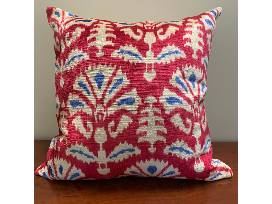 Add this red and blue patterned velvet geometric 20"x20" pillow to any room in your house.