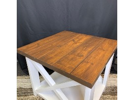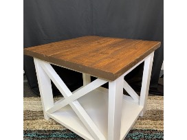 These two lovely side tables were handmade by Chris Byler in Hartville. Solid wood with beautiful craftsmanship. They are matching with white bases and stained wood tops. Durable and solid.