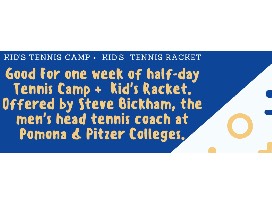 Enjoy one week of Kid's Summer Tennis Camp, a kid's tennis racket and balls offered by Steve Bickham, the men's head tennis coach at Pomona & Pitzer Colleges.