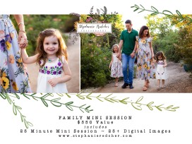 Capture your family with a mini family portrait session with Stephanie Redcher Photography. Package includes a 25 minute session, online gallery of 25+ images and digital download of all gallery images. Redeemable in 2020.