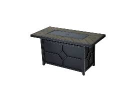 Keep the Autumn evenings crisp air at bay with this Living Accents rectangular propane fire pit table. The fire pit has a 60,000 BTUs output rate with an integrated electronic ignition and features a table with wood look and decorative glass.
