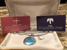 Follow your Heart's direction with the comfort of knowing Someone is there to guide, assist, protect and comfort. This attractive Sterling Necklace includes a striking Sterling Compass Rose in Blue Enamel along with an elegant Sterling Angel in White, pleasingly presented on a 20" Sterling Chain. Let this beautifully symbolic piece remind you of life's journey.