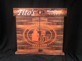 BULLSEYE! Everything you need for a good time with this Tito's Handmade Vodka Wood Dartboard!