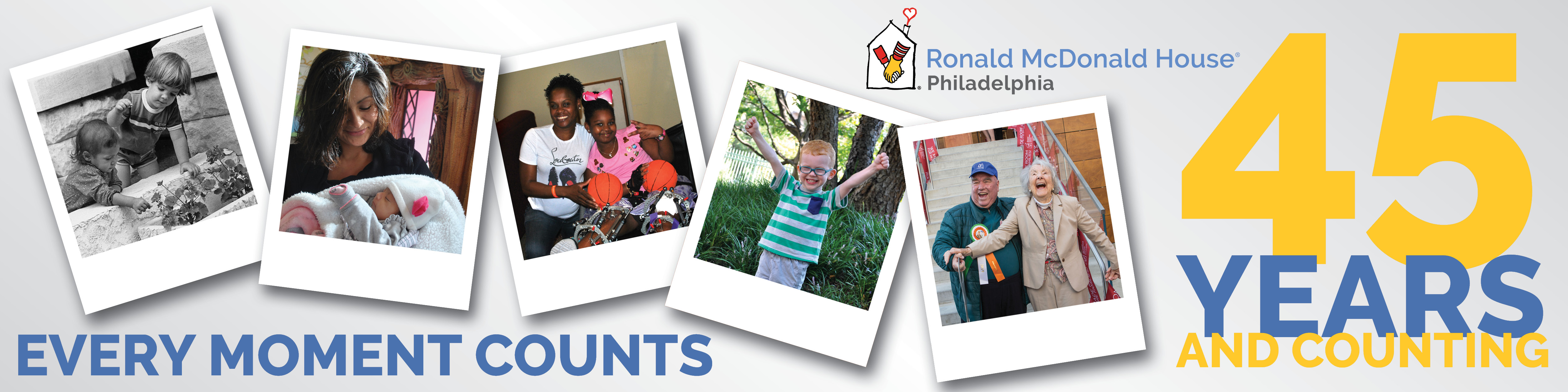 At the Philadelphia Ronald McDonald House, we are thrilled to celebrate 45 years of providing a community of comfort and hope to families of seriously ill children. We know that every family that has walked through our doors over the years has their own journey and we know that every moment counts: whether it's a visit with the doctors and nurses who have provided the best possible medical treatment; one of the many nights parents and caregivers spend encouraging their children; sitting down to a warm meal served with love by one of our guest chef groups; or seeing a smile from a welcoming volunteer after a long day at the hospital.