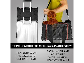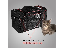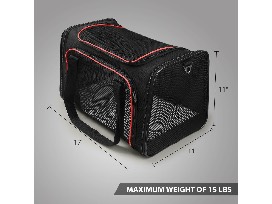 Soft-sided collapsible pet travel carrier for cats. Airline approved. 17" L x 11" W x 11" H.
