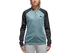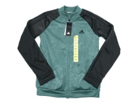 Adidas Women's embossed track jacket in raw green/carbon. Size small.