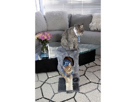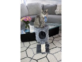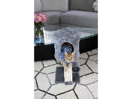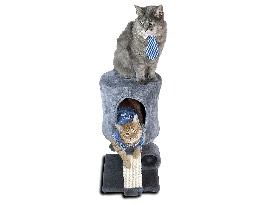 Elevated perch makes a ideal lookout spot. Angeled sisal scratch pad for natural scratching leads into condo. Brown. 15" x 12.5" x 23"
