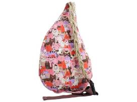 Sling-Style backpack features a cat print, interior zipper pocket, zipper closure, exterior compartments, and an adjustable strap. Measures 11'' L x 1'' W x 20'' H. With matching scarf.