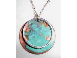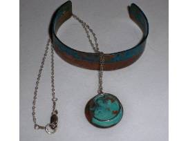 Oxidized Copper Disc and Hammered Sterling Silver Circle Necklace and Oxidized Copper Bracelet.