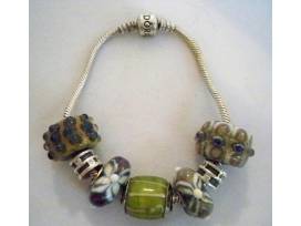 Sterling Silver Pandora Bracelet and 2 spacers with handmade charms.