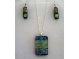 Beautiful Handmade Fused Glass Dichronic Pendant with Sterling Silver Bail and Earrings with Sterling Silver Earwires.