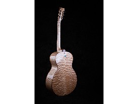 Serial Number: 1220200067GS | Model: Grand Session | Soundboard: Master Grade Western Red Cedar | Back & Sides: Master Grade Quilted Maple | Scale Length: 25.4" 14 Fret Neck | Abalone Trim Options: Soundboard, Headstock, & Double Rosette | Headstock Style: Slotted | Nut/Saddle Material: Cattle Bone | Bridge Pins Material: Cattle Bone | End Pin/Strap Button Material: Snakewood | Binding Material: Curly Hawaiian Koa | Bridge Material: Brazilian Rosewood | Tuning Machines: Waverly 3-on-plate with Snakewood buttons | Pickup: LR Baggs Element VTS Undersaddle Piezo | Case: Custom Ameritage hardshell | Other Options: Double Graphite Reinforced Neck, Koa Arm Bevel | Inlay: "Take these broken wings, and learn to fly."
