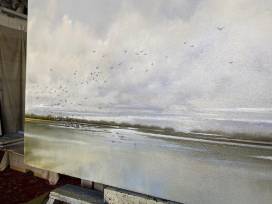 40 x 40 Original Oil painting on canvas. Afternoon view to the east and the river mouth... Choctawhatchee Bay.