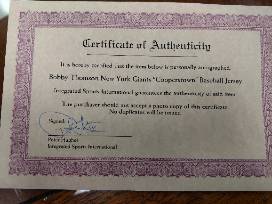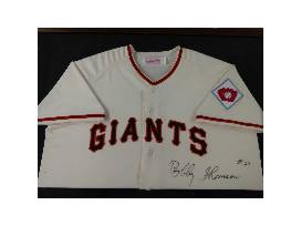 From the October 3, 1951 "Shot Heard 'Round the World" game winning home run, a Bobby Thomson signed and encased signed NY Giants "Cooperstown" Jersey with certificate of authenticity. This game winning home run by NY Giants outfielder and third baseman Bobby Thomson was game winning home run coming in at the 9th inning during a three-game playoff for the pennant. This was the first game televised nationally and was seen by millions of Americans as well as heard by millions on the radio.