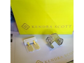 Fabulous set of earrings and cuff bracelet in Kendra Scott's classic filigree in silver. The timeless set will take you from day to night with show-stopping elegance.