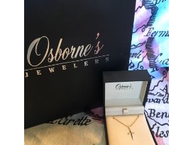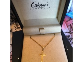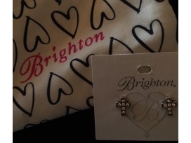 Lovely, simple cross necklace in 14k gold. This delicate piece adorns an 18" gold chain. Also, included a pair of Brighton cross earrings. The perfect gifts!
