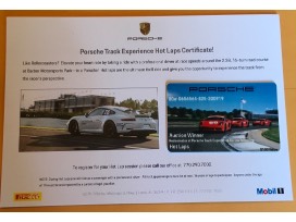 Here's something for the thrill seeker! Hot Laps from the Porsche Sport Driving School in Birmingham (Leeds), AL. The certificate is for one (1) person to ride at racing speeds with a professional driver on the 2.38 course with 16 turns. Also included is a Porsche Driving Team backpack.