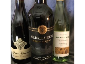 This basket is set for entertaining - three (3) bottles of wine, four (4) wine glasses, Mamas cheese straws, Jacob's caramels, Pizzelle's candy bar and wine bottle stopper.
