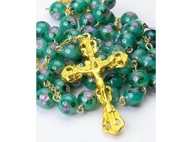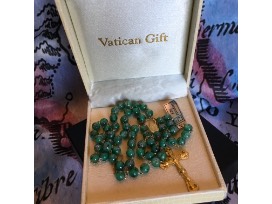 Gorgeous rosary made with 6mm Murano glass green beads with little roses, crafted from 925 silver and gold plated. Certificate of Blessing from the Holy Father included. Would make an amazing gift!