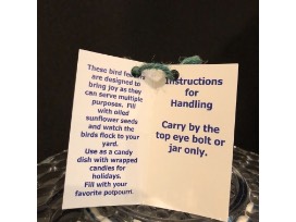 Handmade bird feeder by JEarl. Designed to bring joy as they can serve multiple purposes. Fill with oiled sunflower seeds, use as candy dish with wrapped candies, fill with favorite potpourri.