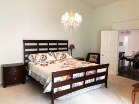 The large great room has a fireplace, cathedral ceilings and opens to the living and dining areas, with a pass through to the kitchen. French doors let in a lot of sunlight and lead to a beautiful backyard with a pool, hot tub and palm trees.