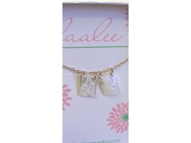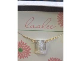 - Gold freshwater pearl rectangular Mary necklace on 14k gold filled chain