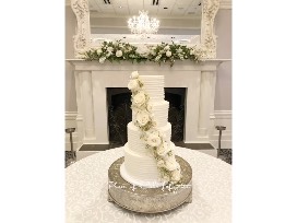 - Specialty cake to feed up to 50 people from Piece of Cake. Two tier cake with your choice of two different flavor cakes and two different fillings. Order must be placed two weeks before the event date.