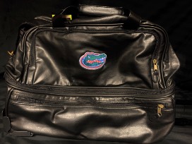 Travel with pride wheeling a University of Florida duffle bag. This bag is carry on size, featuring rollers.