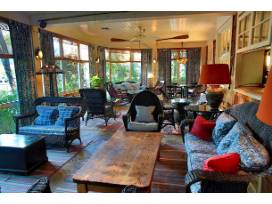 Warm and inviting like a centuries old cabin, the Blue Ridge Grill pays homage to the Blue Ridge Mountains. An immense stacked-stone fireplace, timbers rescued from an 1890's cotton mill, painted log walls and comfortable red leather booths create the unique combination of rustic, yet casual, elegance.