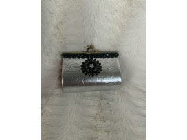 1Adorable silver change purse, key holder, jewelry holder, whatever ideas that you can be creative in how to put this gem to good use! Red interior.