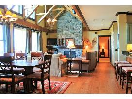 Enjoy mountain views, a large balcony, fully-equipped kitchen and two-story cathedral living room with stone fireplace. The lodge amenities include a heated pool, two hot tubs and a sauna for your relaxation as well as a large common room with a fireplace.