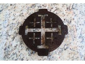Jerusalem Round Trivet is a perfect addition to your family's table. The trivet features a copper vein finish with rubber feet to protect your countertop. 8"