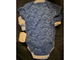 This collection of dinosaur-themed baby gear is the perfect gift for a special baby boy. A cute storage dinosaur bin includes five grow-with-me onesies (two 3-6 months and three 6-9 months) along with a 2-pack of coordinating 100% muslin blankets all by Kyle & Deena. Keep the little tyke entertained with an adorable plush dinosaur and "Dinosaur Dance!" book by Sandra Boynton. To keep baby warm during the cool days ahead the bin also includes a cozy and super soft, pale blue blanket.