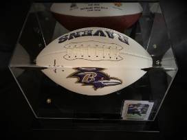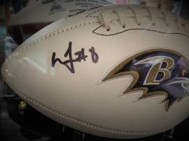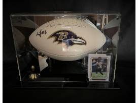 This item is a Baltimore Ravens embroidered logo football hand signed by Lamar Jackson Jr. Jackson is an American football quarterback for the Baltimore Ravens of the National Football League (NFL). He played college football at Louisville and was selected 32nd overall by the Ravens in the first round of the 2018 NFL Draft.
