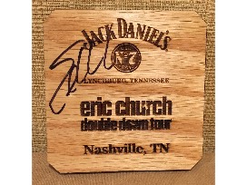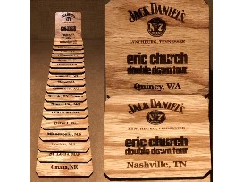 Jack Daniel's barrel wood coasters, exclusively made for each city on the 2019 Double Down Tour. One complete set up for bidding. Second photo shows Nashville coaster autographed by Eric Church. **Shipping will be added on top of the winning bid amount.